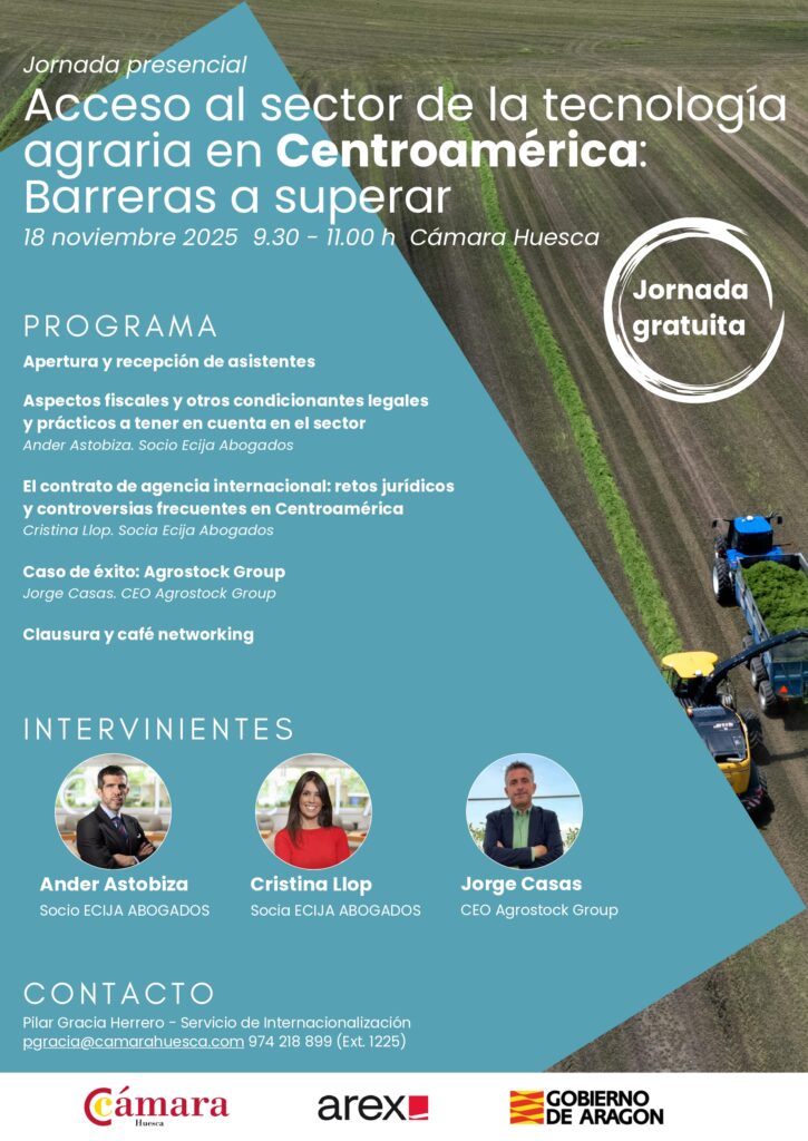 noviembre, 2025 Cámara de Comercio, Industria y Servicios de la Provincia de HuescaCalle Santo Ángel de la Guarda, 7 Ma18nov9:30 AMMa11:00 AMFormato PresencialACCESO AL SECTOR DE LA TECNOLOGÍA AGRARIA EN CENTROAMERICA: BARRERAS TÉCNICASCámara de Comercio, Industria y Servicios de la Provincia de Huesca, Calle Santo Ángel de la Guarda, 7Horario:De 09:30 h a 11:00 h Detalles del evento Detalles del evento HorarioDe 09:30 h a 11:00 h LugarCámara de Comercio, Industria y Servicios de la Provincia de HuescaCalle Santo Ángel de la Guarda, 7 PrecioGratuita Número de Plazas20 Plazo fin de inscripción 18-11-2025 Ref. Curso2148