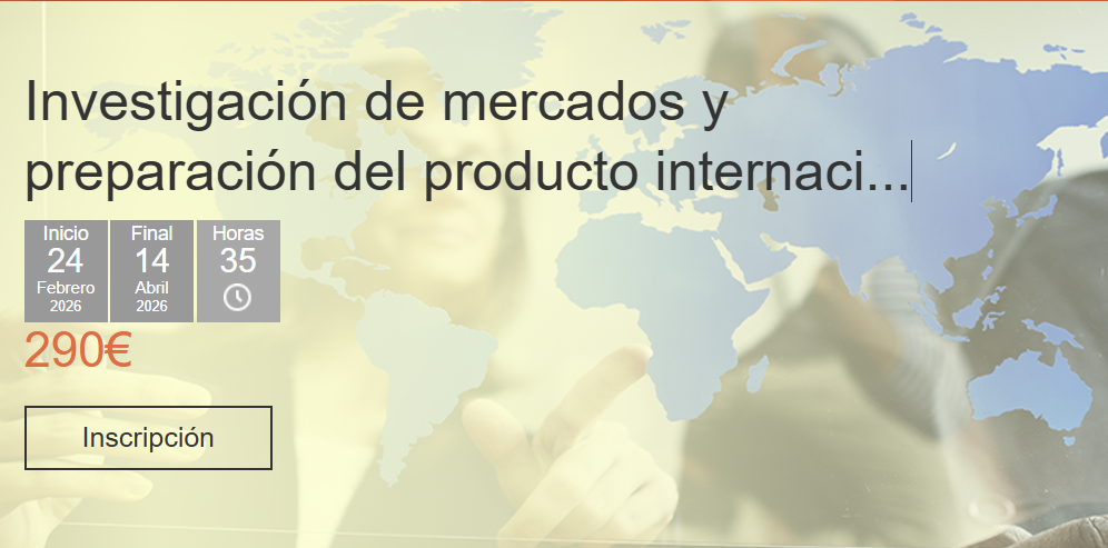 febrero, 2026 Ma24feb5:46 PMMa5:46 PMFormato OnlineCampus virtual: Investigación de mercados y preparación del producto internacional Detalles del evento Más información e inscripciones:https://www.cevirtualhuesca.es/cursos/investigacion-de-mercados-y-preparacion-del-producto-internacional-24-02-2026 Consulta todos nuestros curso del Campus Virtual: Detalles del evento Más información e inscripciones:https://www.cevirtualhuesca.es/cursos/investigacion-de-mercados-y-preparacion-del-producto-internacional-24-02-2026 Consulta todos nuestros curso del Campus Virtual: https://www.cevirtualhuesca.es/cursos/