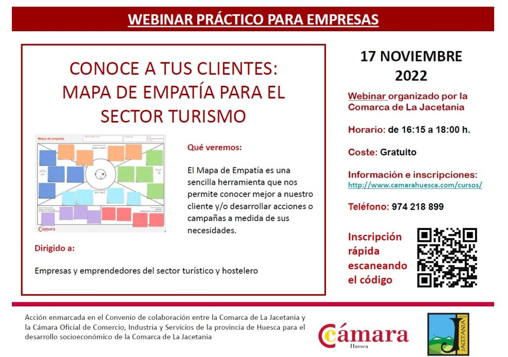 noviembre, 2022 Cámara de Comercio de HuescaCalle Santo Ángel de la Guarda, 7 22005 Huesca Ju17nov4:15 PMJu6:00 PMFormato PresencialConoce a tus clientes: Mapa de empatía Sector TurismoCámara de Comercio de Huesca, Calle Santo Ángel de la Guarda, 7 22005 Huesca Detalles del evento]]> Detalles del evento ]]> LugarCámara de Comercio de HuescaCalle Santo Ángel de la Guarda, 7 22005 Huesca Número de Plazas99 Plazo fin de inscripción 17-11-2022 Ref. Curso1641