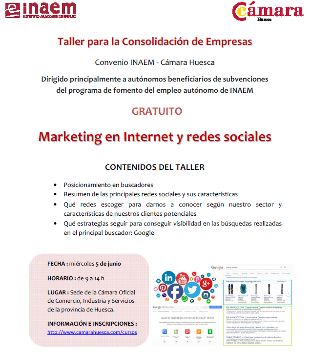 Marketing en internet y redes sociales – Comunicación, marketing online y offline- Talleres de consolidación de empresas