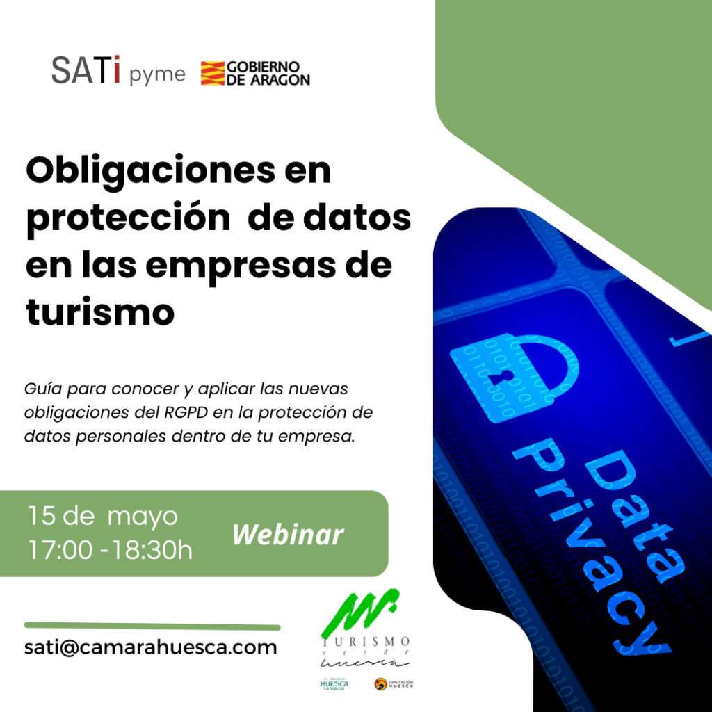 Mayo, 2025 Ju15may5:00 PMJu6:30 PMFormato OnlineTaller: Obligaciones en Protección de Datos en las empresas de turismoHorario:De 17:00 h a 18:30 h Detalles del evento Contenido: -Protección de datos personales-Conocer las nuevas obligaciones en Protección de Datos (RGPD) Detalles del evento Contenido: -Protección de datos personales-Conocer las nuevas obligaciones en Protección de Datos (RGPD)-¿Cómo la implanto en mi empresa? HorarioDe 17:00 h a 18:30 h PrecioGratuito Número de Plazas100 Plazo fin de inscripción 15-05-2025 Ref. Curso2074