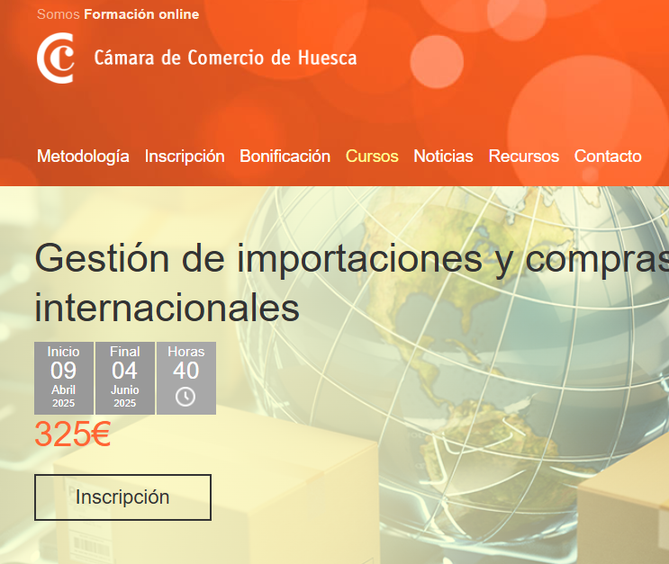 Información e inscripciones: https://www.cevirtualhuesca.es/cursos/gestion-de-importaciones-y-compras-internacionales-abr25