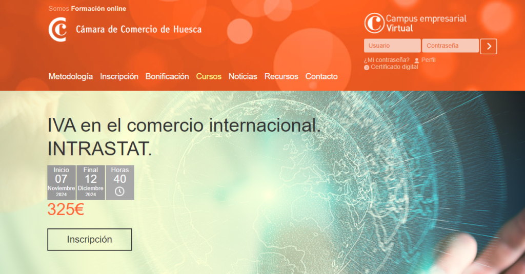 noviembre, 2024 Ju07nov8:00 AMJu3:00 PMFormato OnlineCampus virtual: IVA en el comercio internacional. INTRASTAT (inicio de curso)Horario:Del 7 de noviembre al 12 de diciembre Detalles del evento Más información e inscripciones: https://www.cevirtualhuesca.es/cursos/iva-en-el-comercio-internacional-intrastat-sep24 Detalles del evento Más información e inscripciones: https://www.cevirtualhuesca.es/cursos/iva-en-el-comercio-internacional-intrastat-sep24 HorarioDel 7 de noviembre al 12 de diciembre Precio325 €