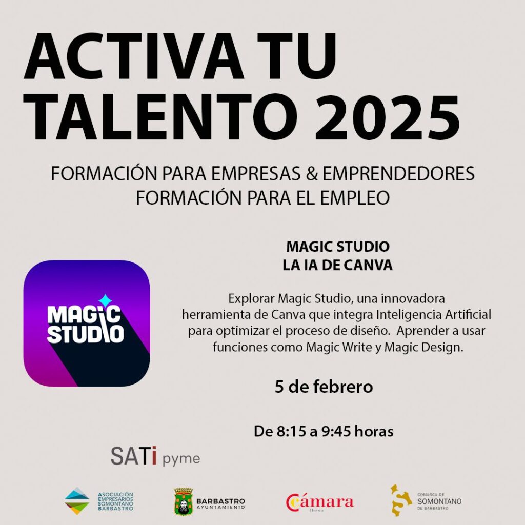 Mi05feb8:15 AMMi9:45 AMFormato OnlineMagic Studio: la IA de CanvaONLINEHorario:De 8:15 h a 9:45 h