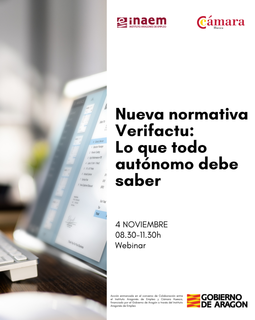Acción enmarcada en el convenio de Colaboración entre el Instituto Aragonés de Empleo y Cámara Huesca, financiado por el Gobierno de Aragón a través del Instituto Aragonés de Empleo